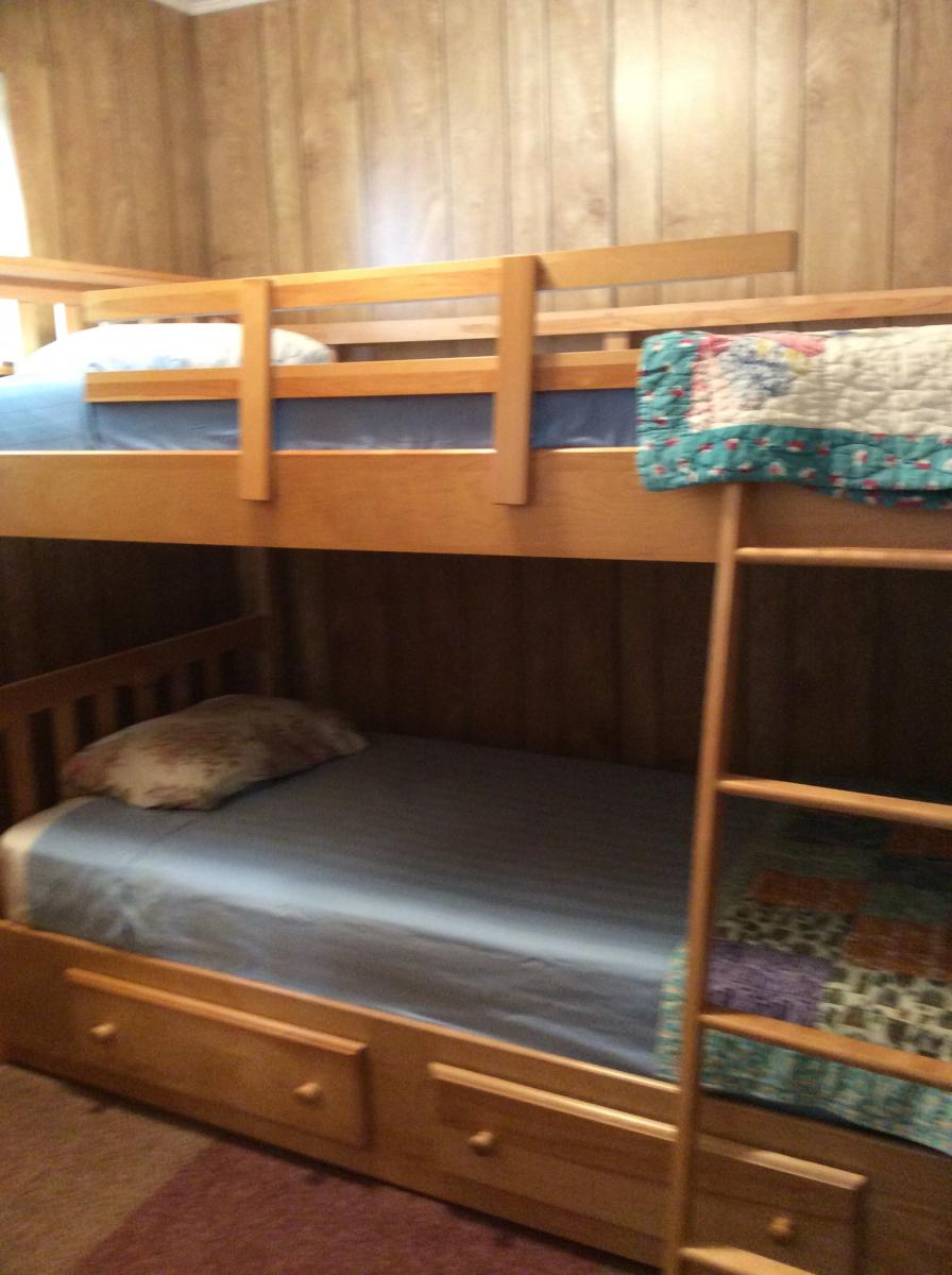 Meadowview Cottage contains 2 double beds in the large bedroom, a set of bunk beds in the smaller bedroom, and a fold-out double-size sofa bed in the living area. So, this cottage can accommodate 4 additional guests.